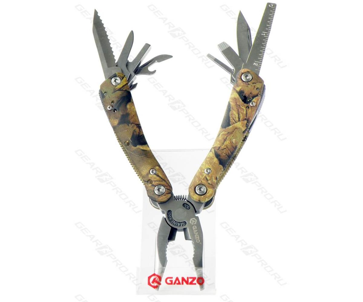 Инструменты — плоскогубцы, кусачки, две плоских отвертки, нож с прямым лезвием, нож с серрейторной заточкой, открывалка для бутылок, консервный нож, напильник, шило, линейка, держатель для бит