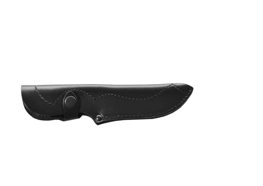 Закрытый малый чехол для ножа с лезвием длиной до 12,5 см. Имеет красивую форму, украшен декоративной ажурной строчкой. Для закрепления ножа имеется застежка на кнопке. Для ношения на офицерском ремне имеет шлевку. Скрепляющая строчка защищена от прорезания лезвием ножа внутренней прошвой и хольнитенами.