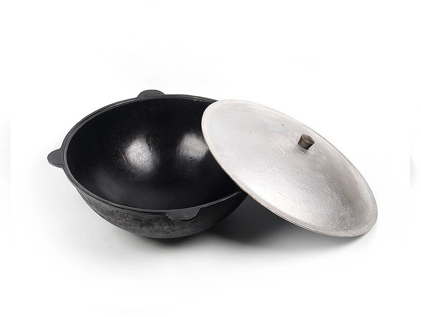 Казан 12 литров изготавливается в двух вариантах: с плоским дном и с круглым дном. Первый вариант подойдёт для кухни, так как плоское дно обеспечивает хорошую устойчивость на плите, а казан с круглым дном подойдёт для использования на специальной печи. Казан комплектуется алюминиевой крышкой.