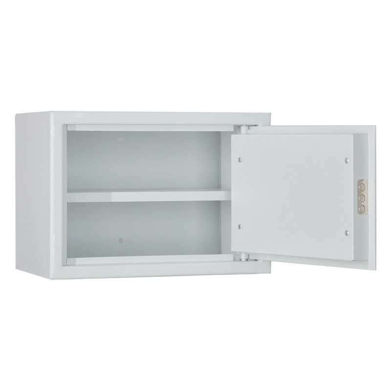Характеристики ВЕС, кг: 6,5 Размер: 250x350x250 ОБЪЕМ: 0,02 Взломостойкость: нет ЗАМОК: Ключевой ТОЛЩИНА: 1,2 мм стенки / 2 мм дверь Трейзер: нет Кол-во полок: 1 Способ крепления: к стене, 2 отверстия Цвет: Серый